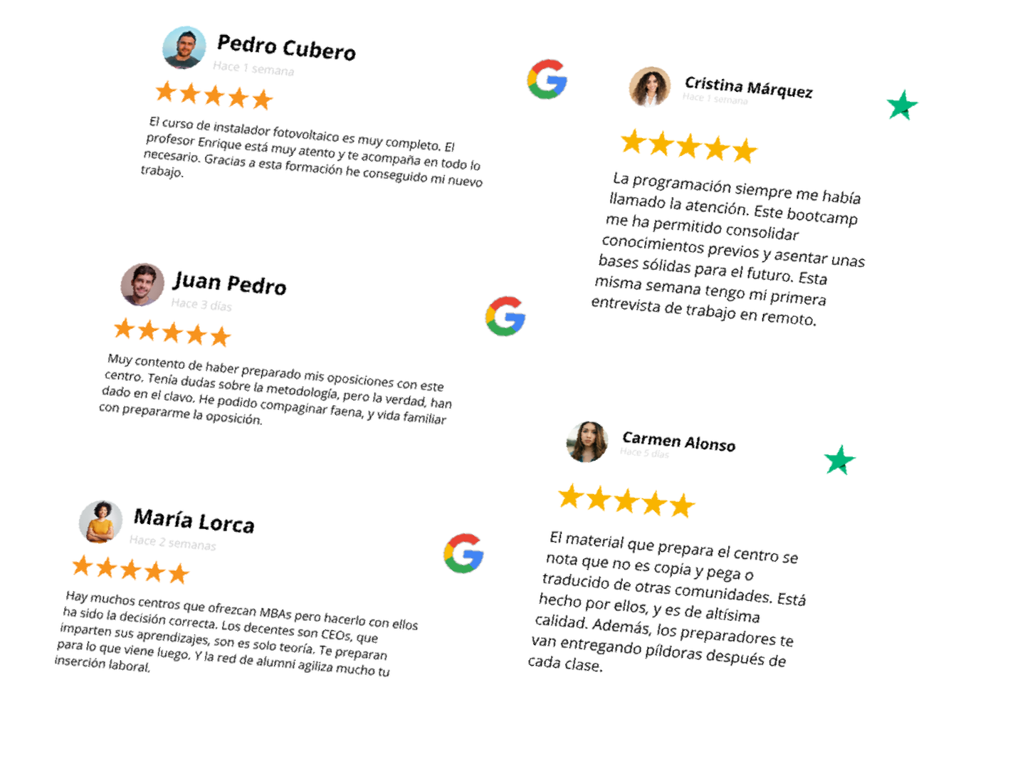 Cualquier centro que ya tenga alumnos satisfechos pero pocas reseñas visibles. Academias de oposiciones, FP, idiomas, formación profesional, escuelas de negocios o incluso universidades. Si ofreces una formación transformadora, tus alumnos te escogen por tu reputación.